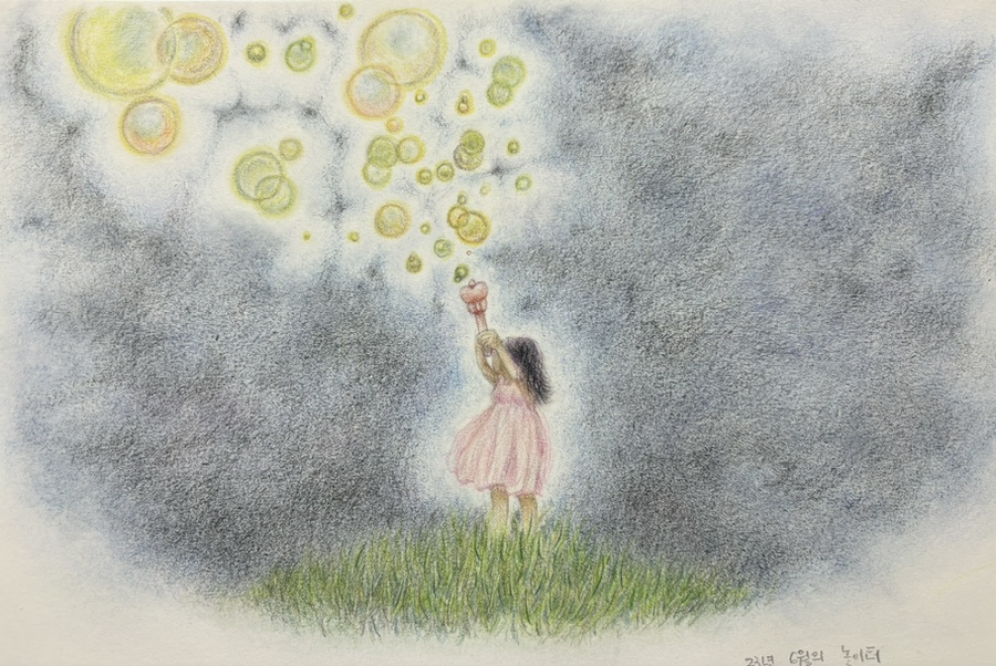 누군가에게 닿든 닿지 못하든, 있었는데 없어지는 비눗방울을 보면서 여자 아이를 생각했어요.